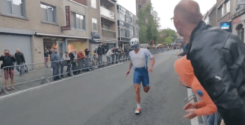 26-year old American Eamon did at the Gullegem Kermesse ride in Belgium where he snagged a top 10 finish despite having to run cross the finish stripe after another rider crashed into him during the final sprint.