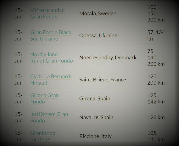 Latest News COMPLETE GRAN FONDO CALENDAR FOR EUROPE Date: 06/18/2019Author: Dan Hood Click here for latest up-to-date Gran Fondo Calendar for Europe. Related