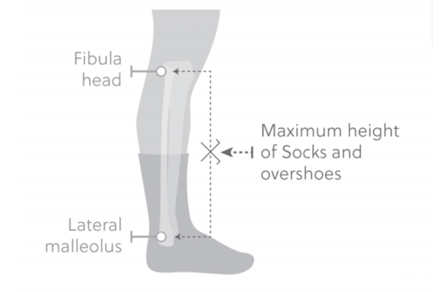 The rule states “Socks and overshoes used in competition may not rise above the height defined by half the distance between the middle of the lateral malleolus and the middle of the fibula head.”