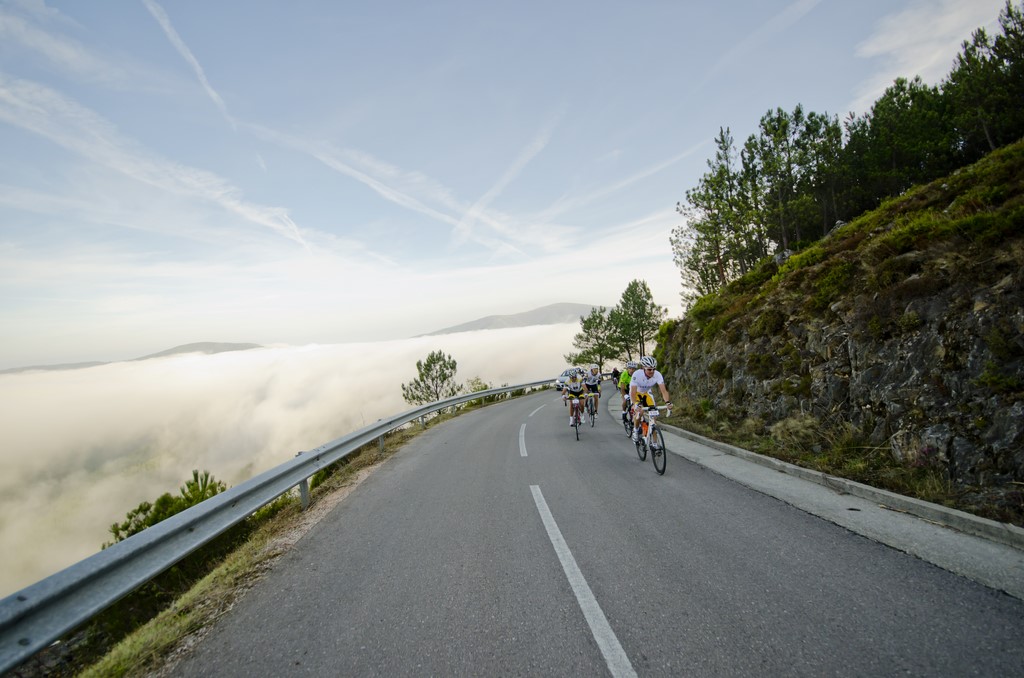 After a warm-up of 28km, Gran Fondo riders encountered the first major difficulty, the first category climb to the Alto do Xiqueiro, at 12km long and an average gradient of 6% it soon broke the peloton into small groups.