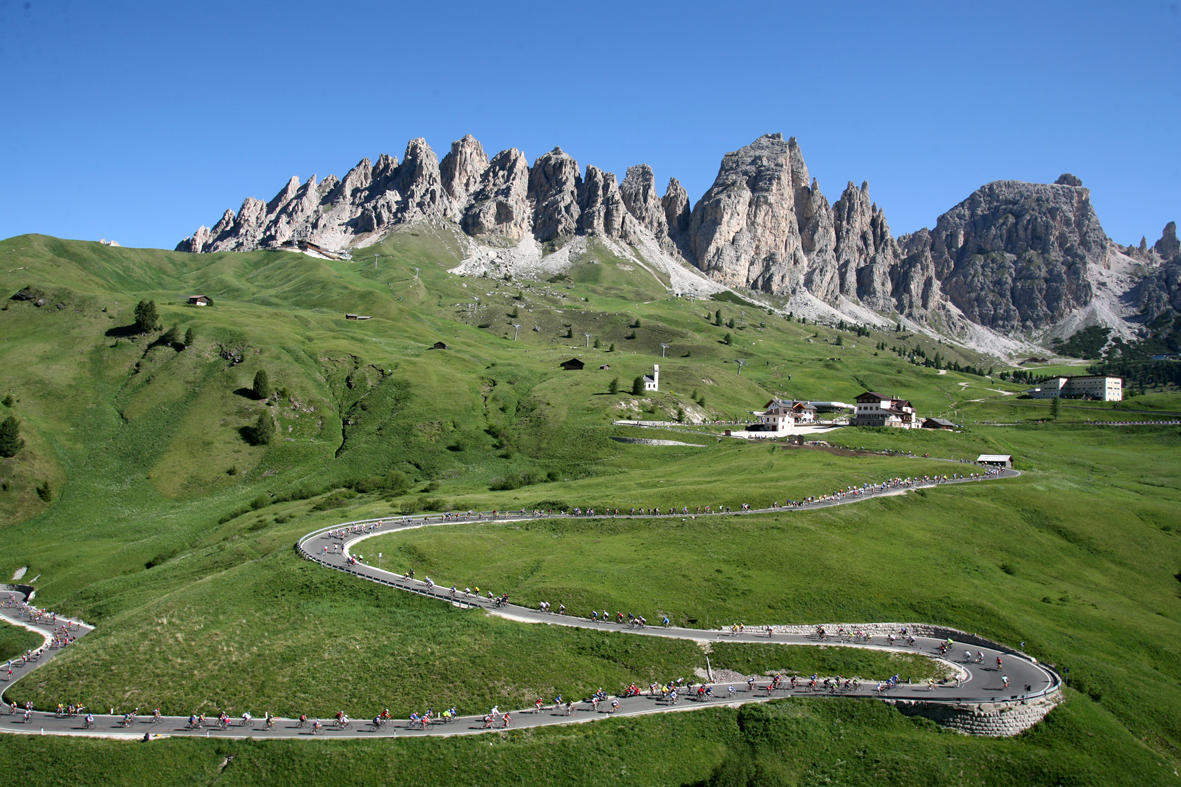 Riders will race up (and down) famous passes including Furkelpass, Passo Valparola and Falzarego. On Passo San Boldo riders will ride through rock tunnels cut by hand through the mountain. They will also climb the magnificent Monte Grappa, where Eddie Merckx battled Francesco Moser and Felice Gimondi up the steep slopes at the 1974 Giro d’Italia.