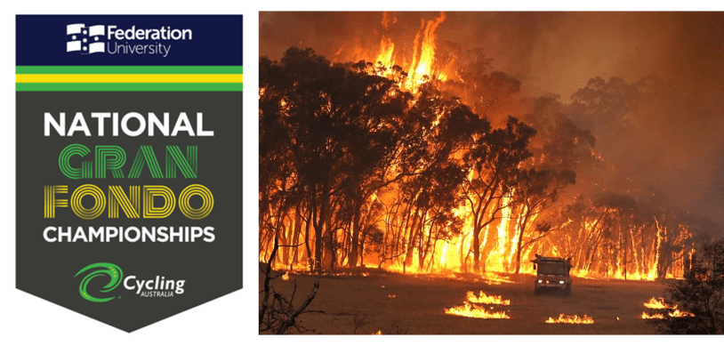 Riders at the Australian National Gran Fondo Championships in Buninyong, along with Cycling Australia, are contributing to the national bushfire disaster relief effort via Saturday’s National Gran Fondo Championship race.