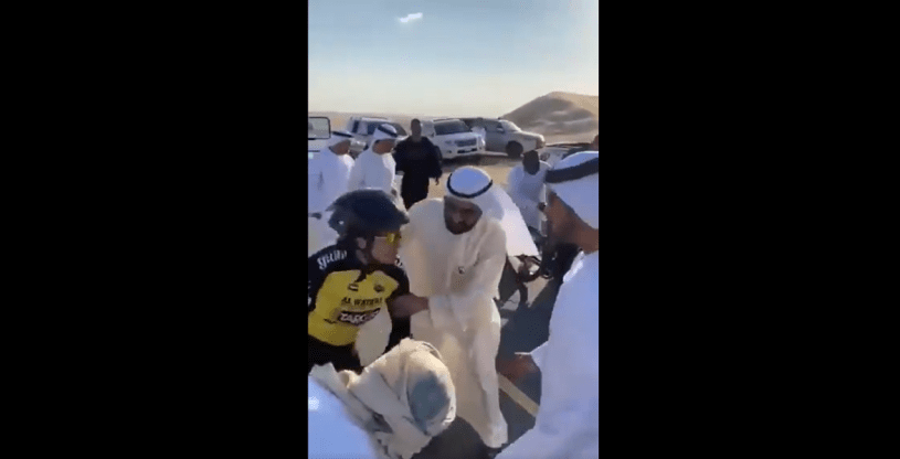 According to an Instagram post on UAE’s official account, the cyclist belonged to the Al Wathba cycling team and only sustained minor injuries.