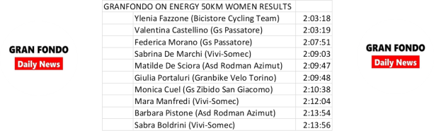 In the women’s race it was Ylenia Fazzone from Cuneo who was fastest, beating Valentina Castellino at the line. Third place and three minutes behind was Federica Morano.