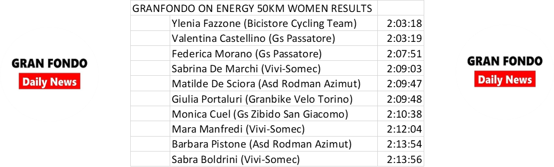 Due to severe bad weather that hit the Savona region on Friday night, 20km of the route, including the climb to Quazzo, had to be bypassed, leaving only a short 50 kilometres to contest the race for the 300 participants.