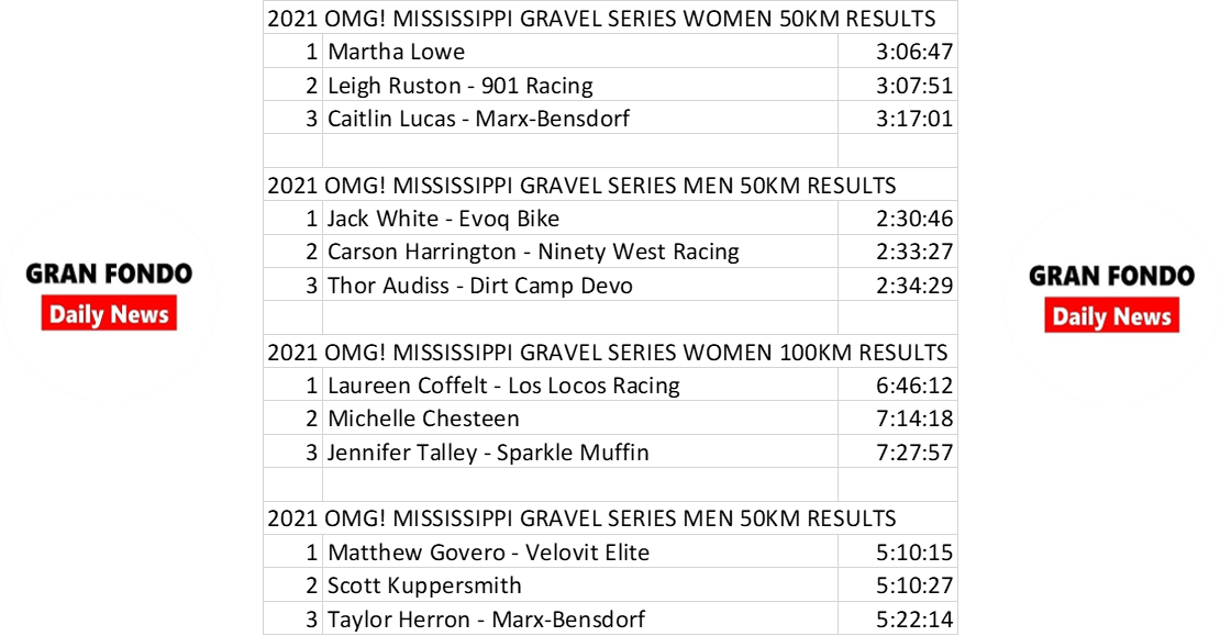Gravel riders from all across Mississippi and from states as far away as Iowa and Colorado traveled to Oxford to race 100, 50 or 25 miles on fast hard pack dirt roads.