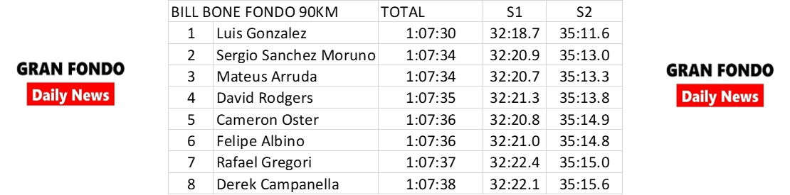 The competitive segments were each 25 kilometres long and flat, really flat, South Florida flat with only 11m of elevation change. So fast bikes and sprinters ruled the day with the top eight riders finishing both segments clustered within seven seconds. Luis Gonzalez was fastest with a total time of 1:07:30 at an average speed of 44.44kph.