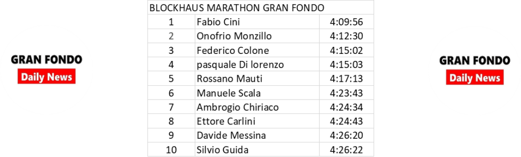 As the 2021 Giro d’Italia started it’s first road stage, amateur Fabio Cini won the 137-kilometer Blockhaus race with 4117 meters vertical ascent, including the third hardest climb in Italy after Zoncolan and Mortirolo. Cini raised his arms in victory atop the summit 4:09:56 after the race started in Pacentro. Over two minutes later Onofrio Monzillo crossed the finish line in second place, followed soon by Federico Colone in third place.