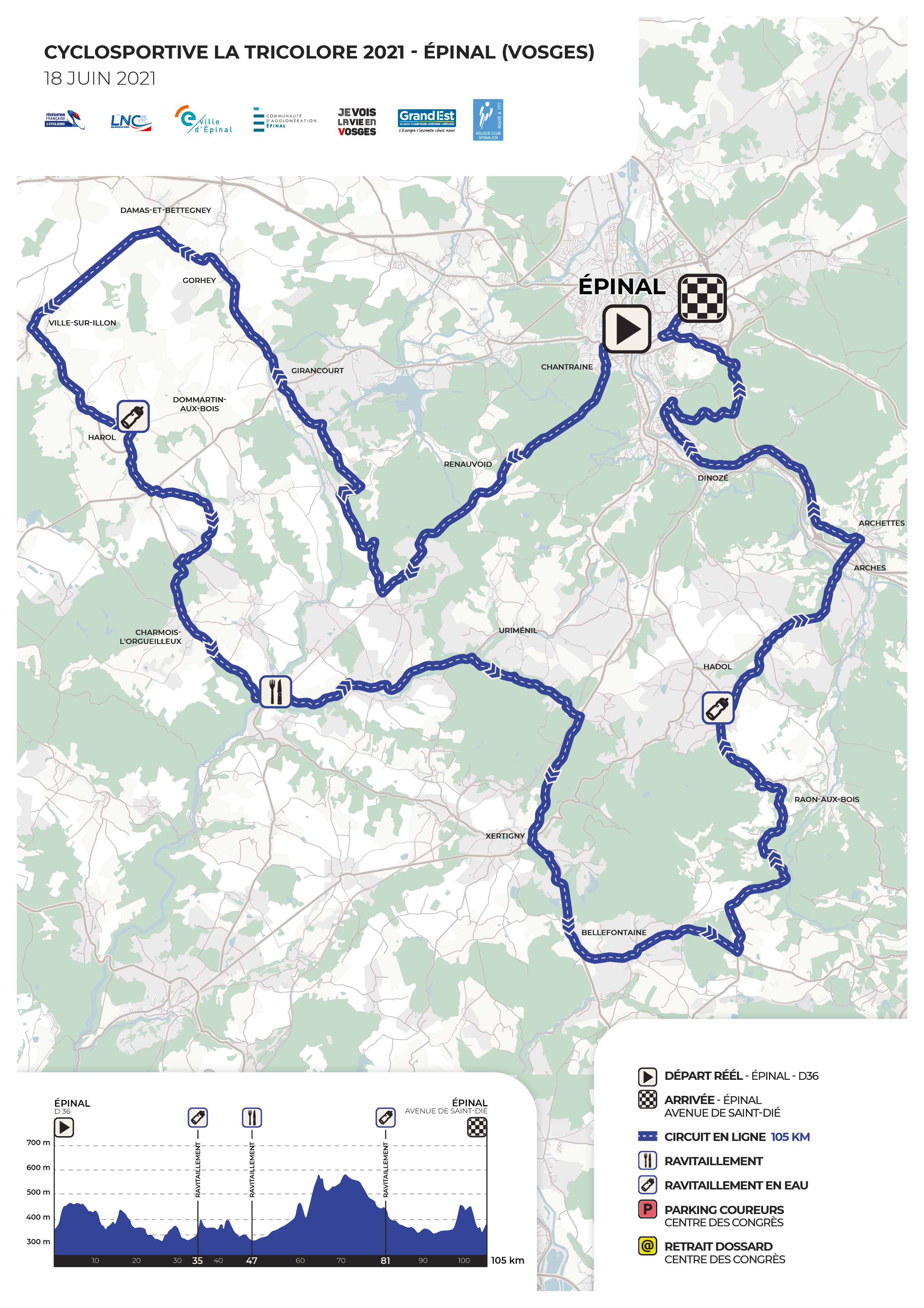 Organized by the French Cycling Federation (FFC) and the Vélo Club Spinalien, the new Tricolore Cyclosportive on 18 June will take place as part of the French National Road Cycling Championships on the same course professional and elite cyclists will ride two days later.