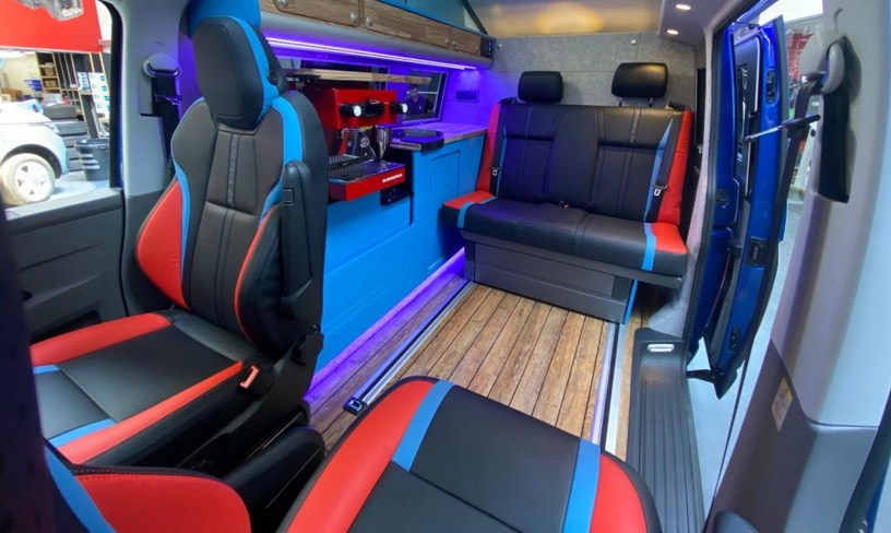 Volkswagen in partnership with CJL Leisure Vehicles in the UK recently built a one-of-a-kind VW Transporter conversion for amateur cyclist and professional cycling team chef Alan Murchison. The custom cycling van checks every box – comfortable chairs, restful sleeping beds, covert cycle storage and full kitchen – including a stunning La Marzocco espresso machine.