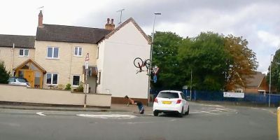 HORRENDOUS CRASH SENDS CYCLIST FLYING – AMAZINGLY HE ONLY BROKE A TOE