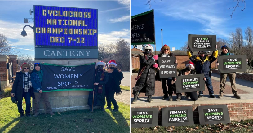 The demonstrators were part of “Save Women’s Sport,” a right-wing conservative group as defined by the Southern Poverty Law Center and American Civil Liberties Union, that is “a coalition that seeks to preserve biology-based eligibility standards for participation in female sports.” During the races they held signs displaying messages that included “Say no to males competing as females” and “woman = adult human female.”