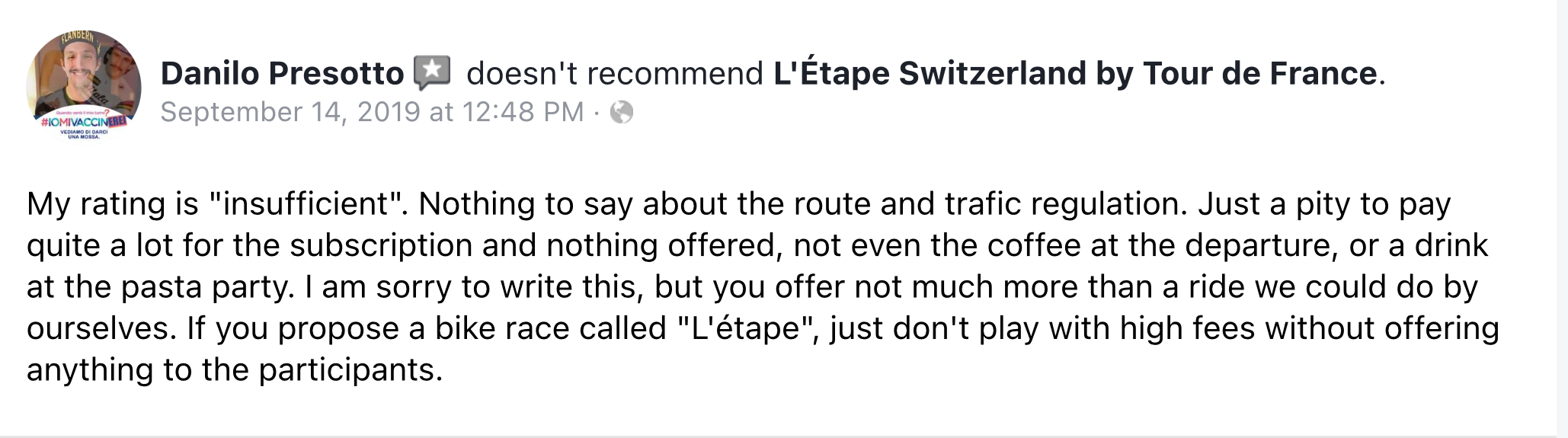 Competition from two other Swiss events (Bodensee Radmarathon and La Jolidon Classique), scheduled on the same weekend, as well as poor reviews from participants saying the event it is not worthy of the ”L’Etape” label might also play a part in the organizer’s decision to cancel.