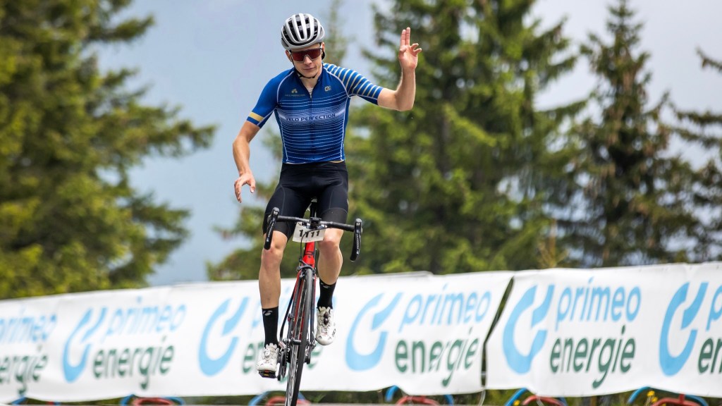 On Saturday, the first event of the weekend took place, a 7.4 kilometer steep uphill time trial on the slopes of the famous Col de la Croix. 25 year-old Swiss rider Dimitri Bussard (Velo Perfection) blazed to the summit in 0:18:35. 42 year-old former Olympic gymnast Andreas Schweizer (0:19:46) was second and Simon Betz (0:19:53) third. Top SkiMo racer Juillaguet Swann (0:20:10) used the event as offseason training and finished just off the podium in fourth.