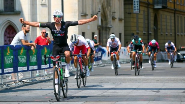 In a sprint finish composed solely of top Italian riders, 28 year-old Matteo Cigala (TEAM DAN MORRISSEY – MCCARTHY INSURANCE GROUP – PACTIMO) won the Granfondo gold medal by over two bike lengths, leaving everyone else strung out in his wake as he crossed the finish line. Tomasso Elettrico took the silver medal and Ettore Carlini the bronze.