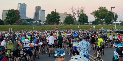 DAMN BIG PELOTON AT BIG DAM BRIDGE FONDO IN ARKANSAS USA