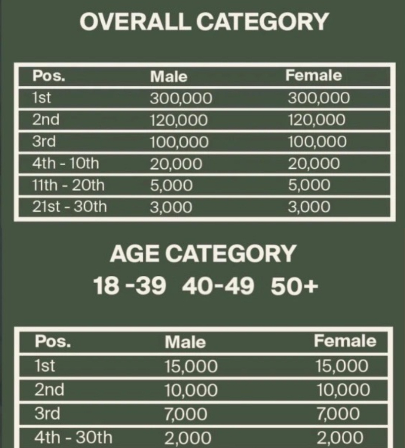 Prize payout results (30 places for each category) are unofficial since they have not yet been adjusted to remove professional riders.