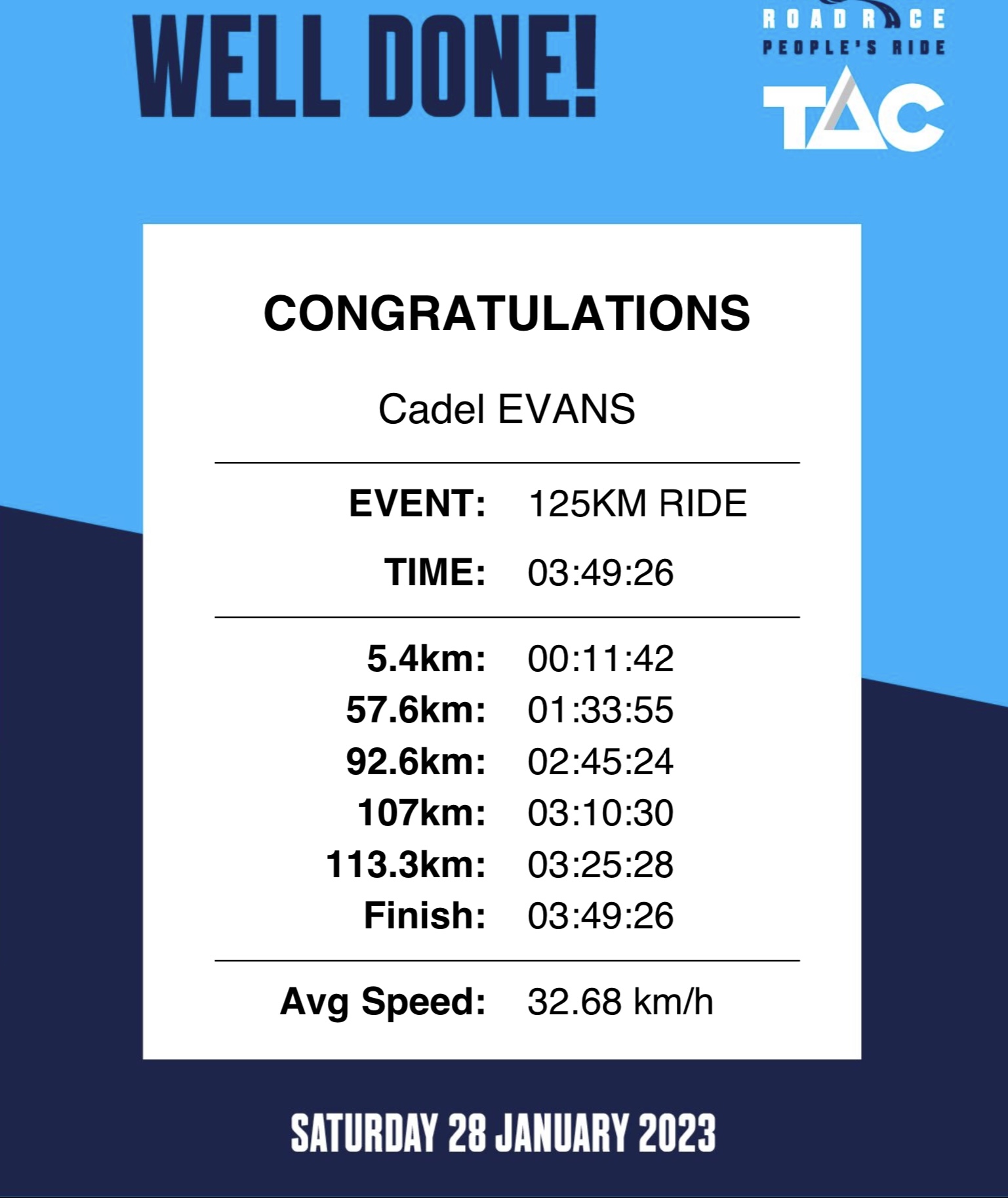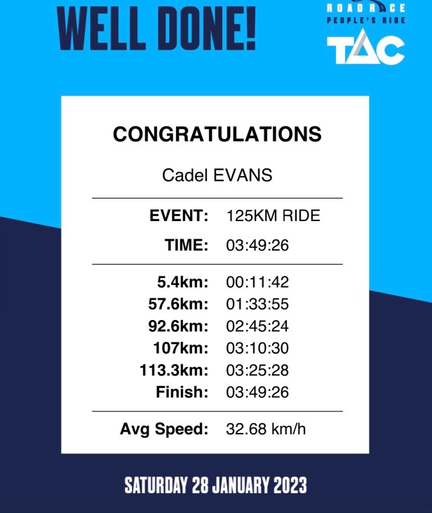 Tour de France and World Champion Cadel Evans held the seventh edition of his People’s Ride gran fondo for over 3000 cyclists on 28 January after a multi-year pandemic induced break.