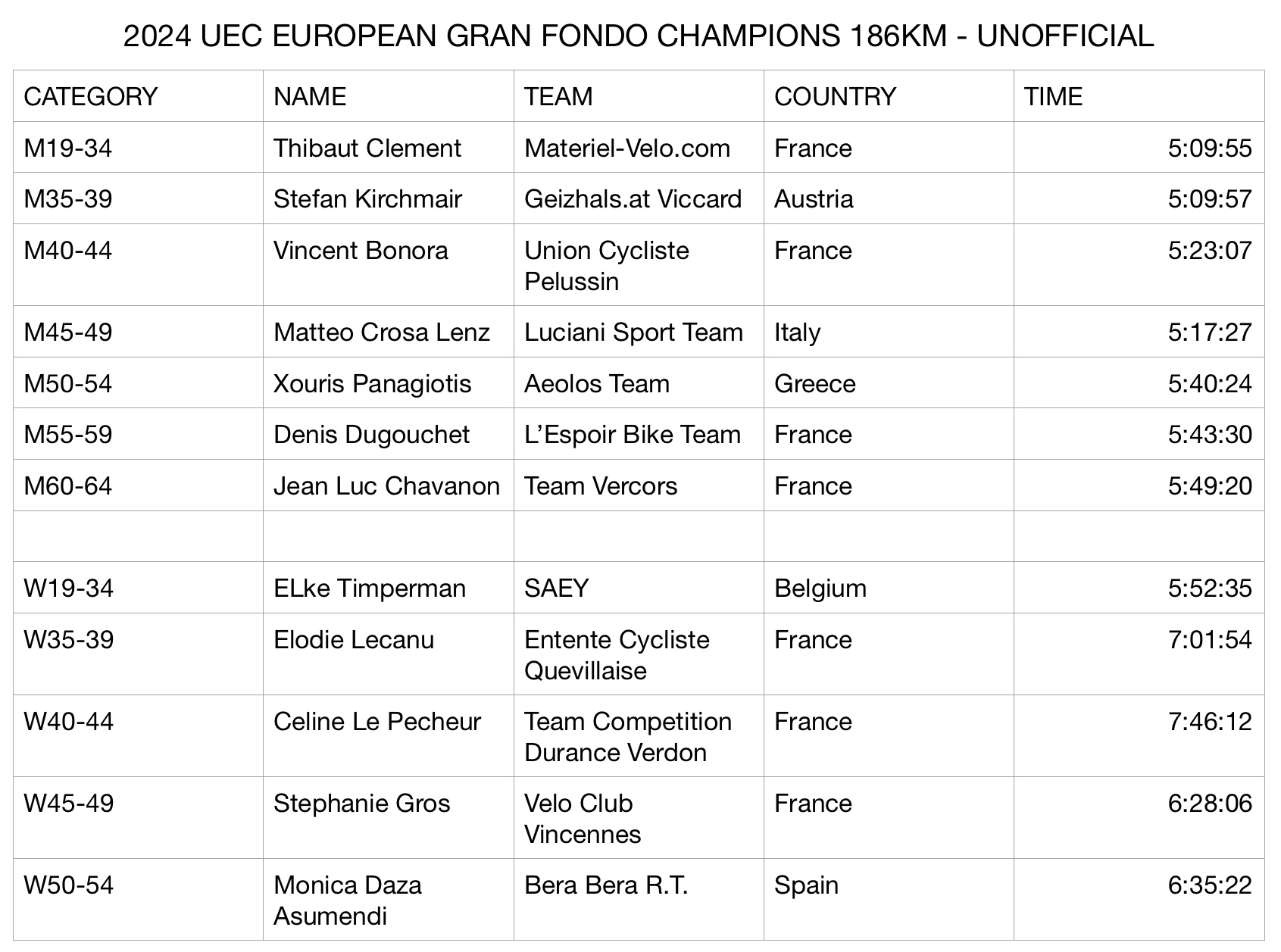 The European Cycling Union (UEC) Granfondo and Mediofondo Championships took place on Saturday 15 June in Saint-Félicien at the famous French L’Ardéchoise cyclosportive.