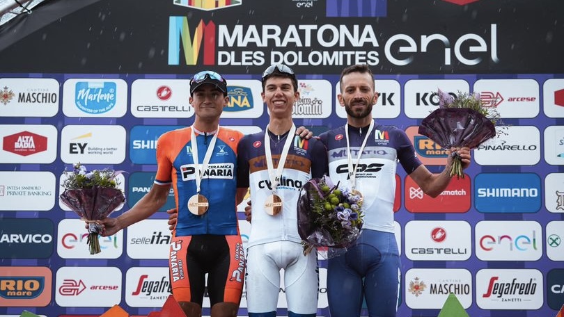 The 37th Maratona dles Dolomites in Italy ended with victory for Italian Giuseppe Orlando (CYCLING EXPLORERS) and Slovenian Laura Simenc (TEAM DE ROSA SANTINI) after 138 kilometers of racing in miserable wet conditions with over 4200 meters of climbing.