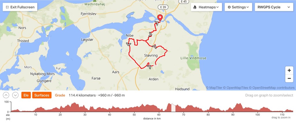 The 33.3 kilometer individual time trial competition takes place Thursday 29 August on a flat out-and-back counter clockwise route with only 133 meters of elevation gain. With Denmark almost always having westerly winds, time trial riders should expect headwind on the outbound leg and a tailwind push to the finish. The average wind speed in Aalborg in August/September is 22kph, but it is not uncommon to encounter gusts up to 35kph along the coast. Insider Tip: Practice training in windy conditions on a time trial bike. Also, note that with a strong return tailwind it might be faster to sit up a bit and use your back (plus rear disc wheel) as a sail, rather than stay in full aero tuck.