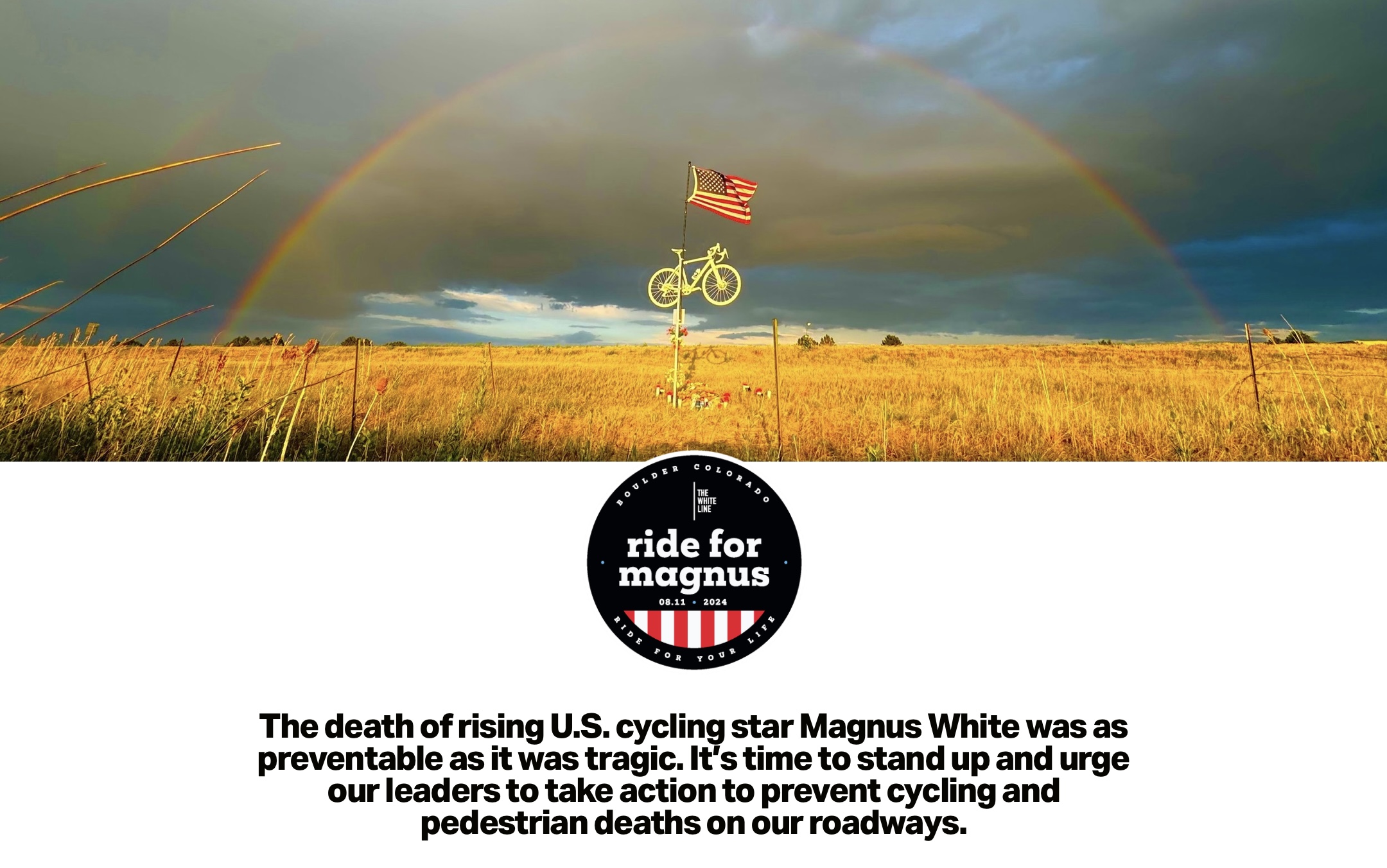 The Ride for Magnus took participants from the city of Boulder to Gunbarrel, winding past a white ghost bike and American flag that commemorates the spot where Magnus died – while wearing his USA National Team jersey.