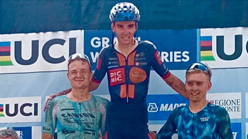 The 34 year-old Frenchman soloed to victory in 3:25:47 on the 120 kilometer long Monsterrando route in rolling hills of the Piemonte wine region, followed by Petr Vakoc of the Czech Republic at 3:26:15 and the Dutchman Loman Mathijs at 3:26:49.