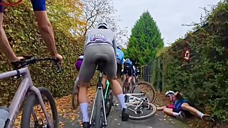 With over 1000 competitors jockeying for position on a 147km mixed surface course, including 9 kilometers of narrow bike paths, crashes were inevitable.