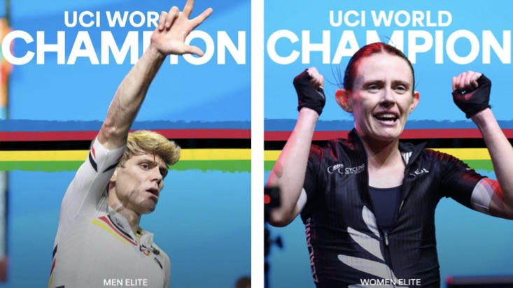 Competing in a three race omnium on the MyWhoosh virtual racing platform against the world’s best esports cyclists, the 31 year-old Osborne (a former world-class rower) scored 564 points to win back-to-back men’s world titles and rainbow jerseys.